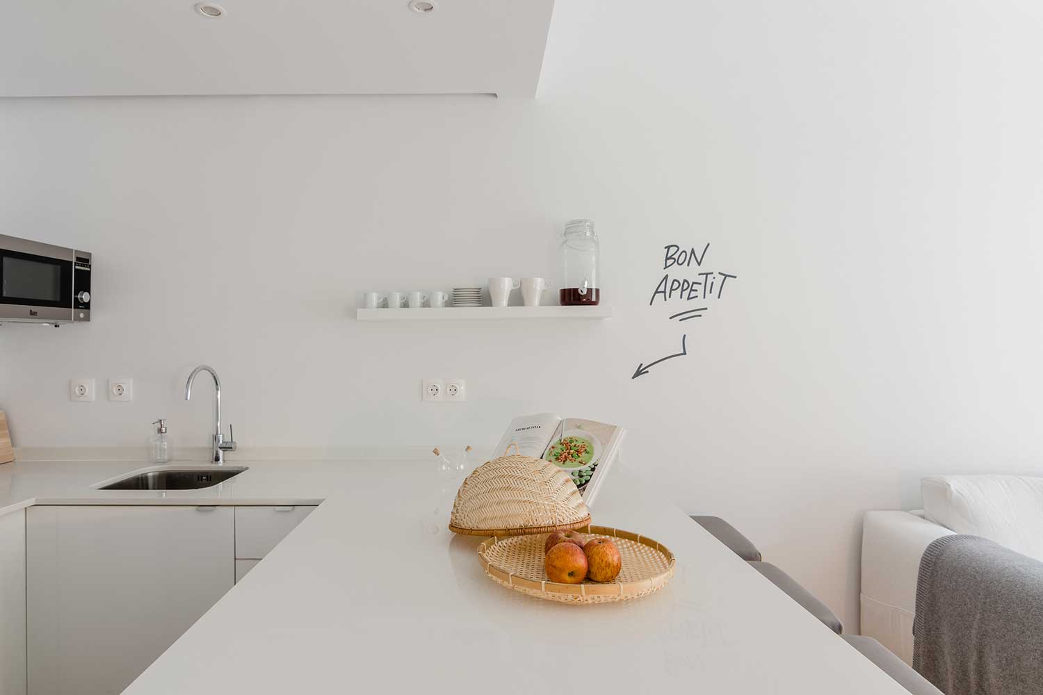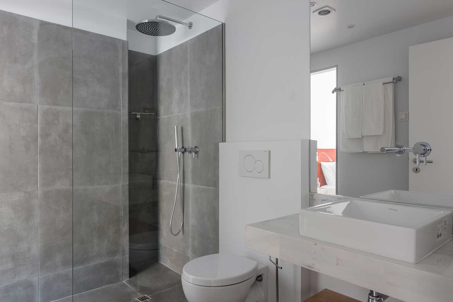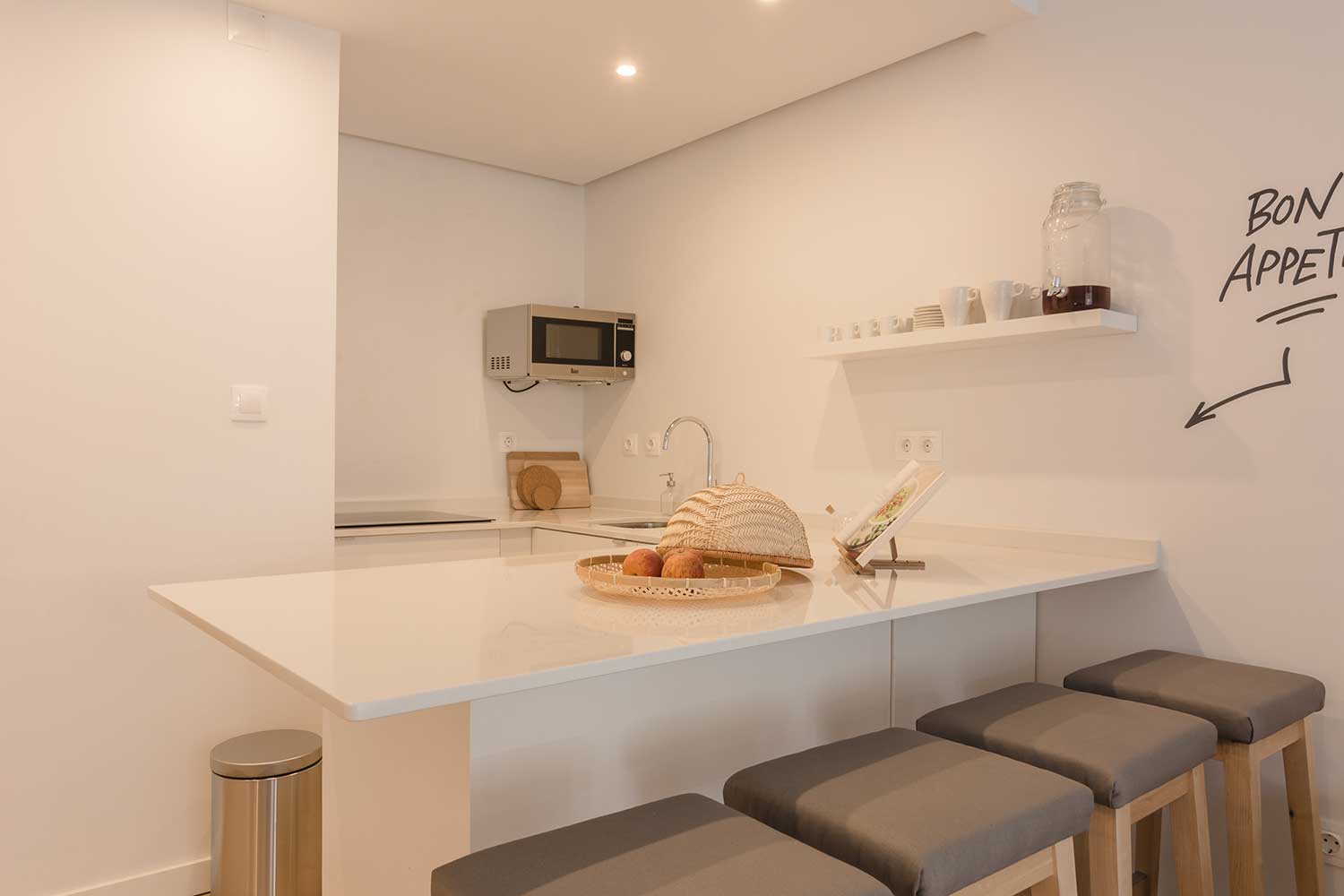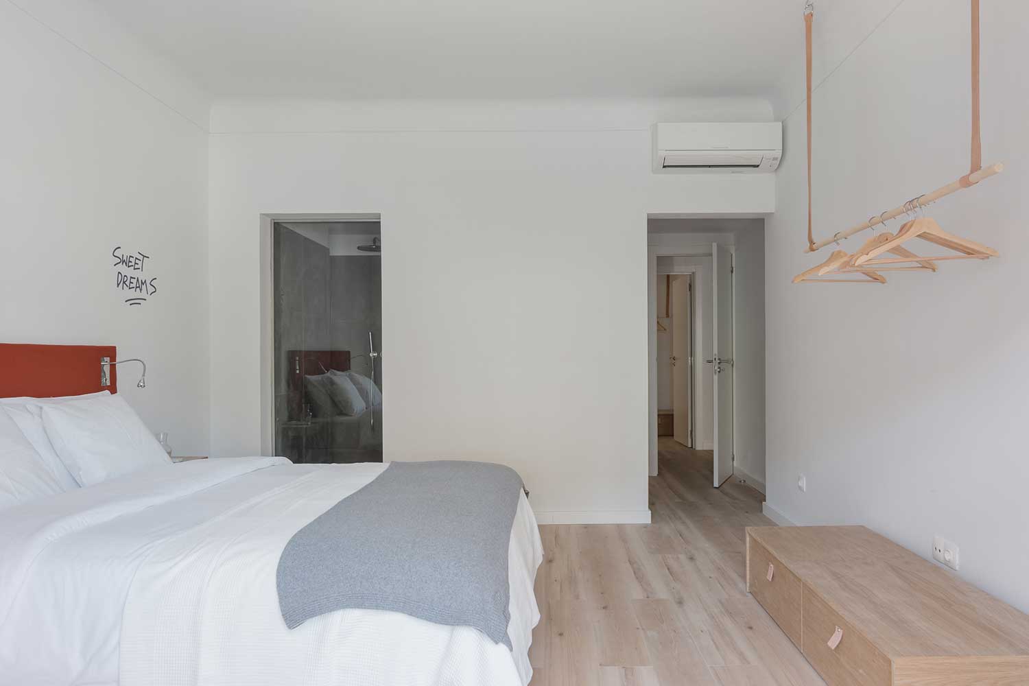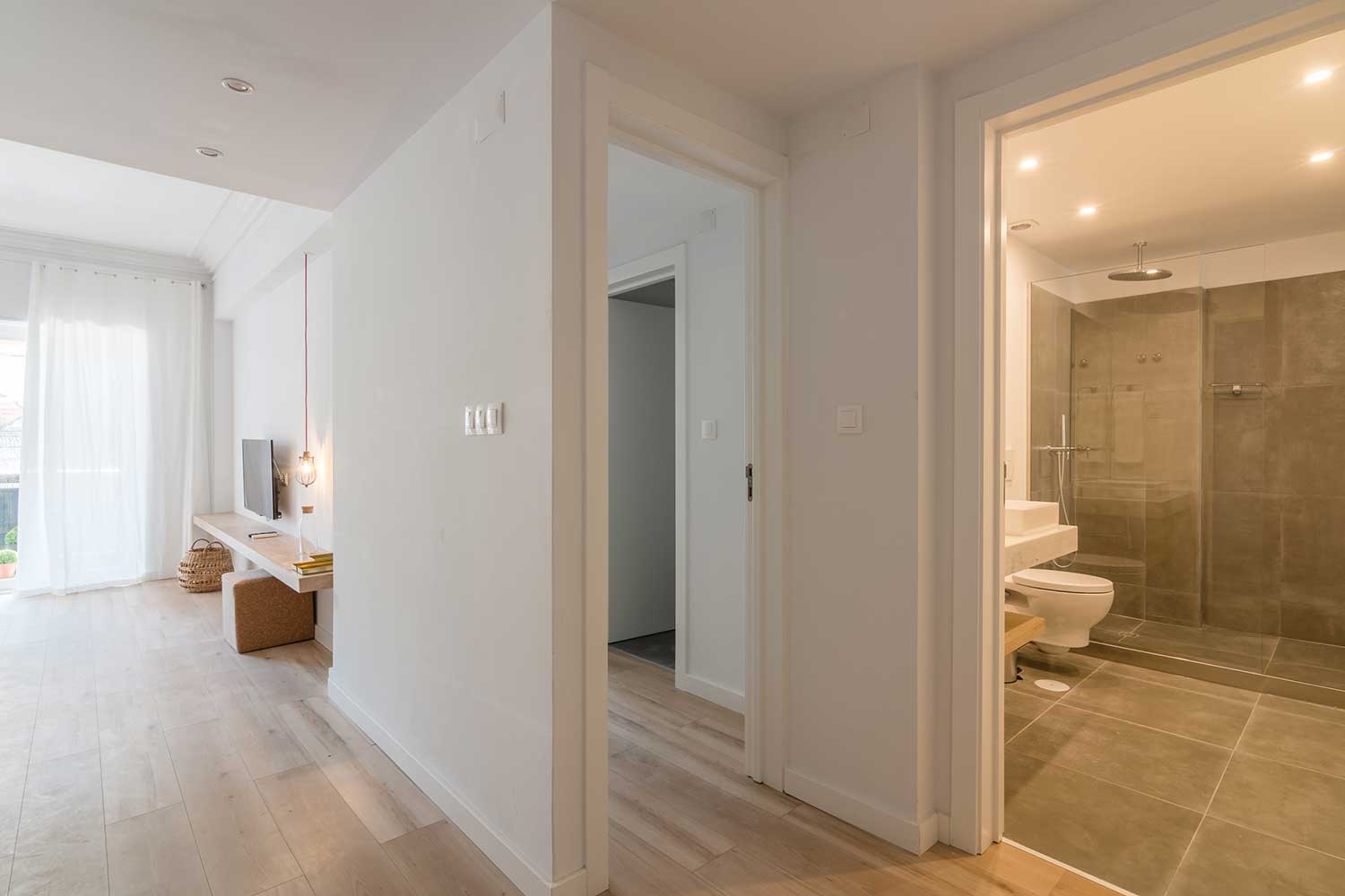 This apartment accomodates four people, has two bedrooms (one with two single beds and one master bedroom) and two bathrooms.