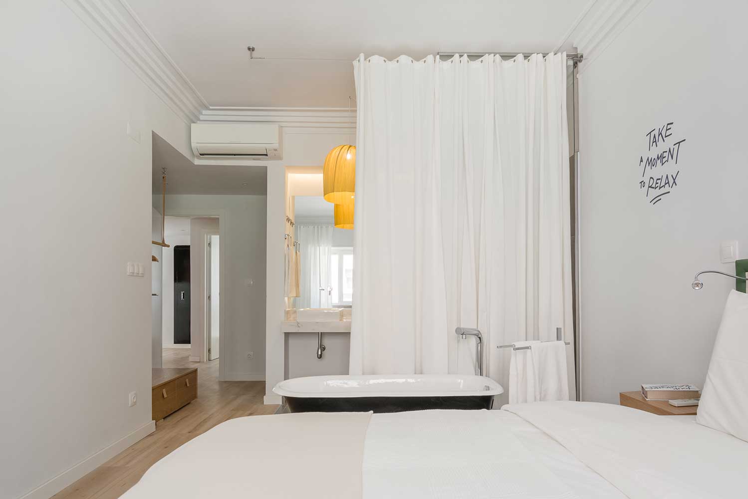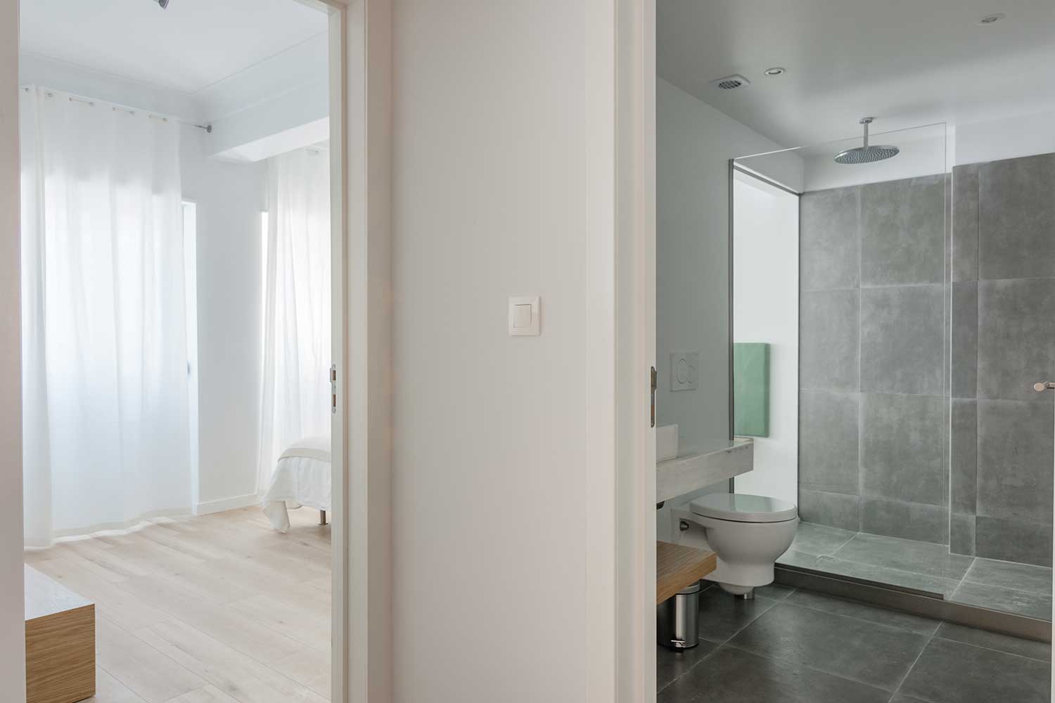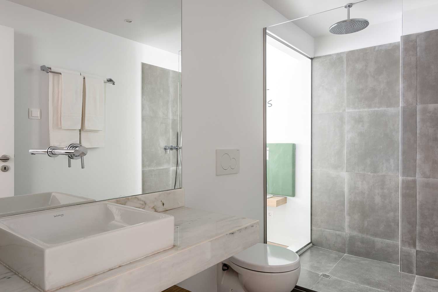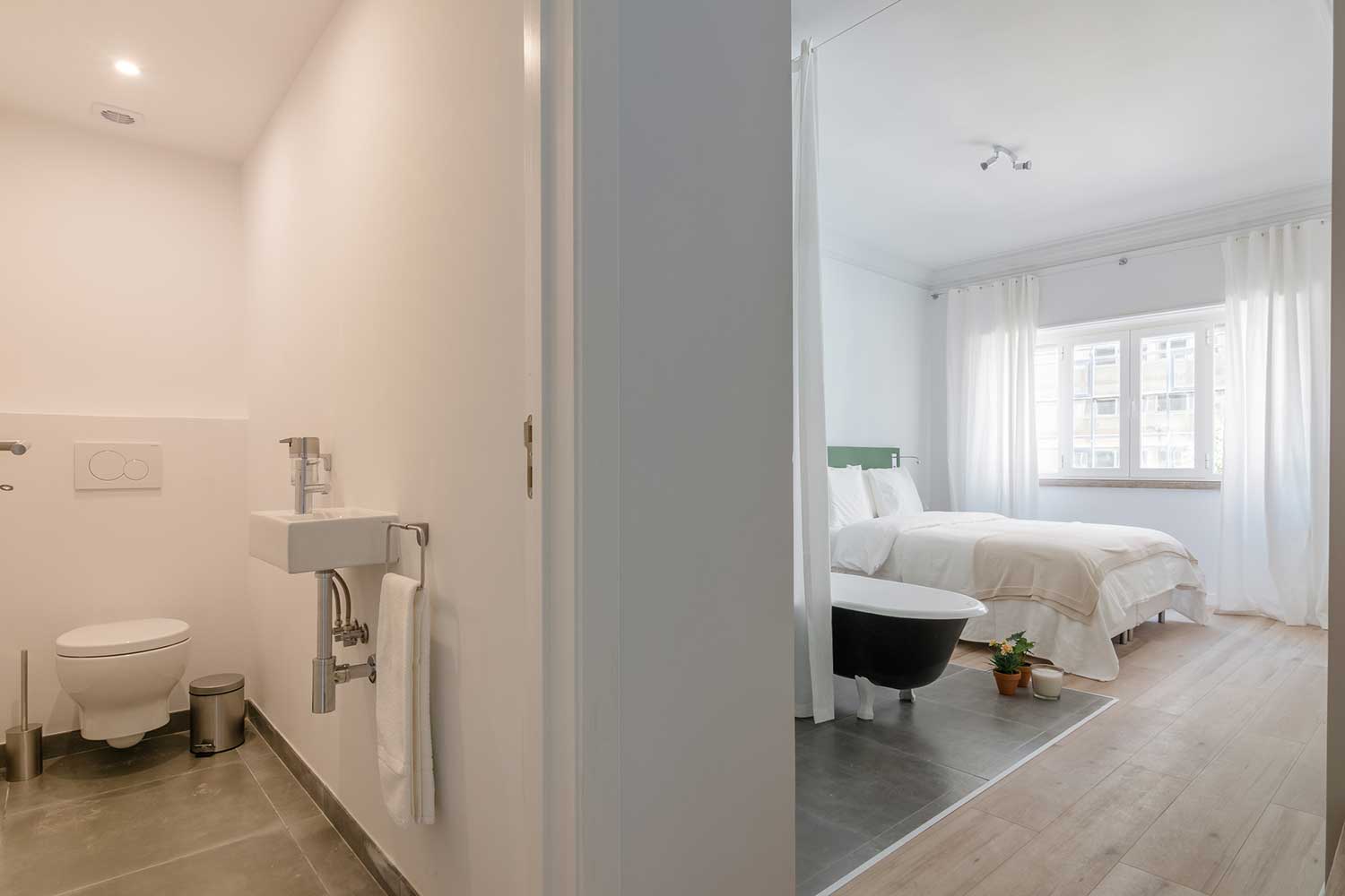 This apartment accomodates four people, has two bedrooms (one with two single beds and one master bedroom) and two bathrooms.