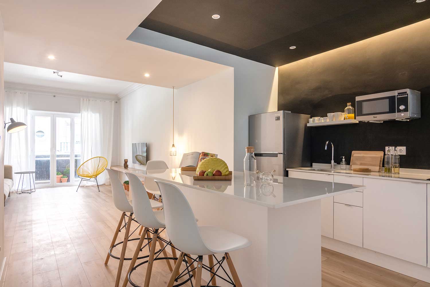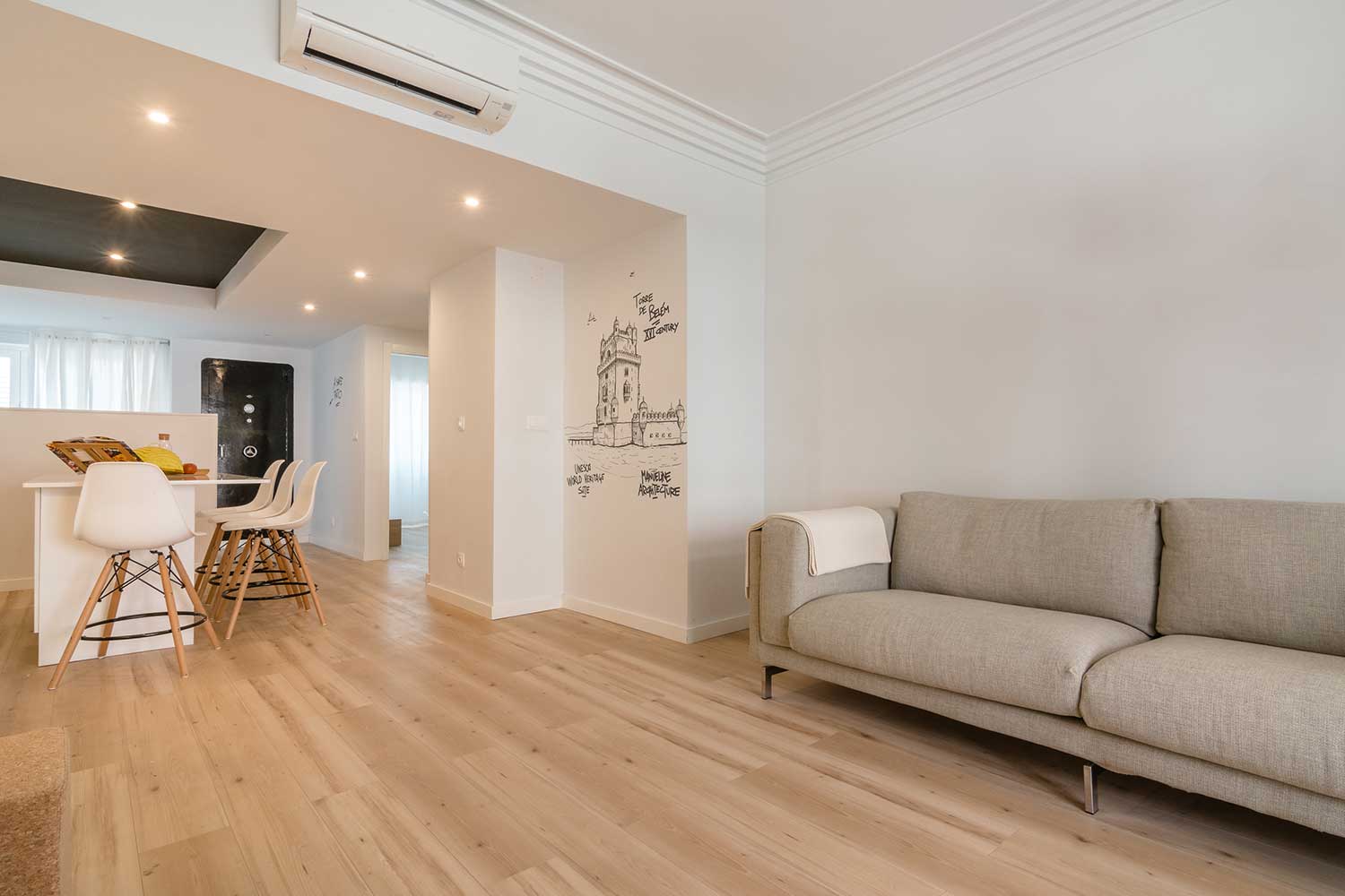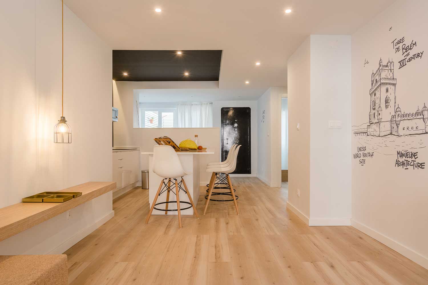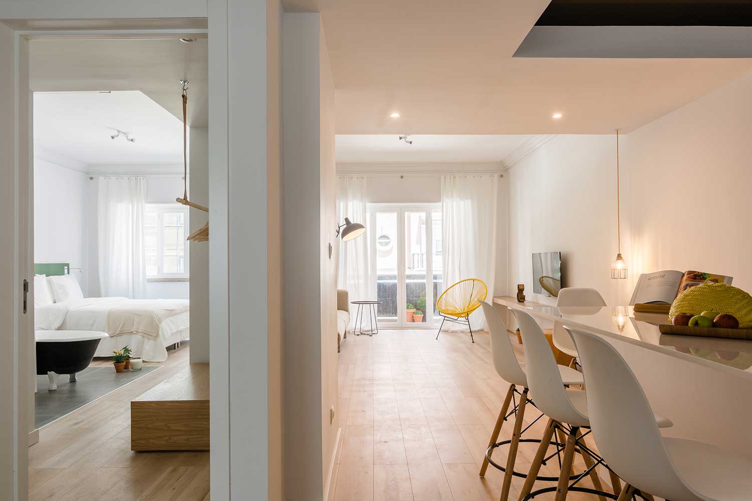 This apartment accomodates four people, has two bedrooms (one with two single beds and one master bedroom) and two bathrooms.