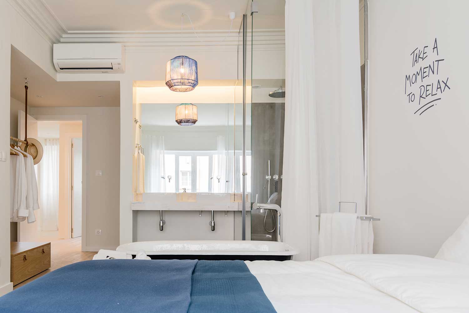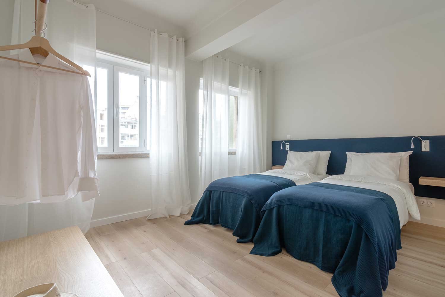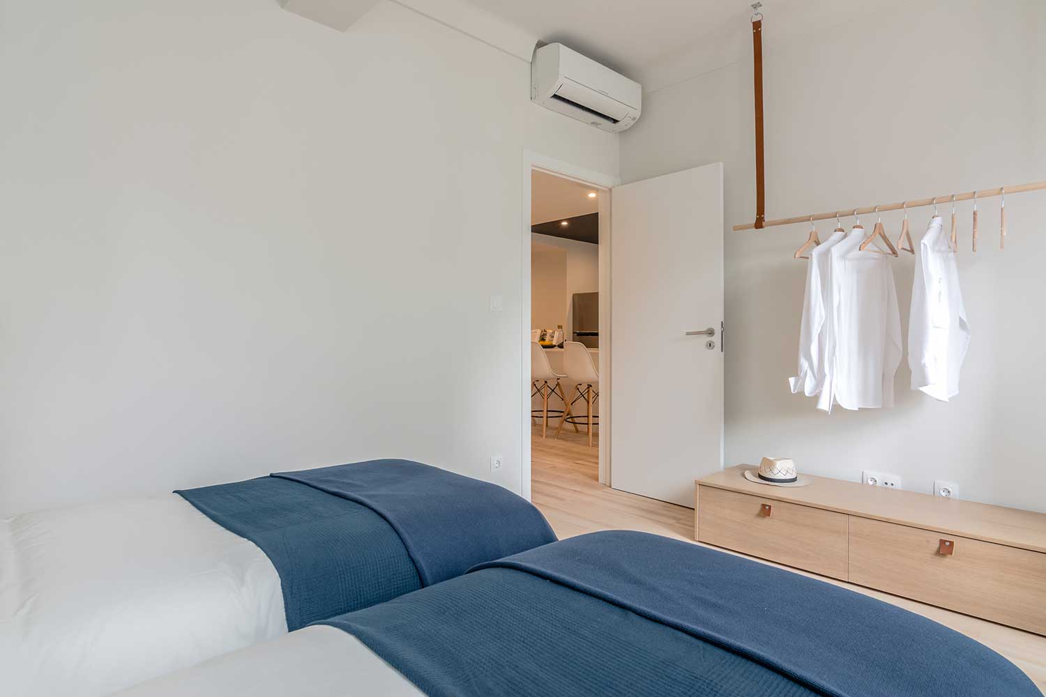 This apartment accomodates four people, has two bedrooms (one with two single beds and one master bedroom) and two bathrooms.