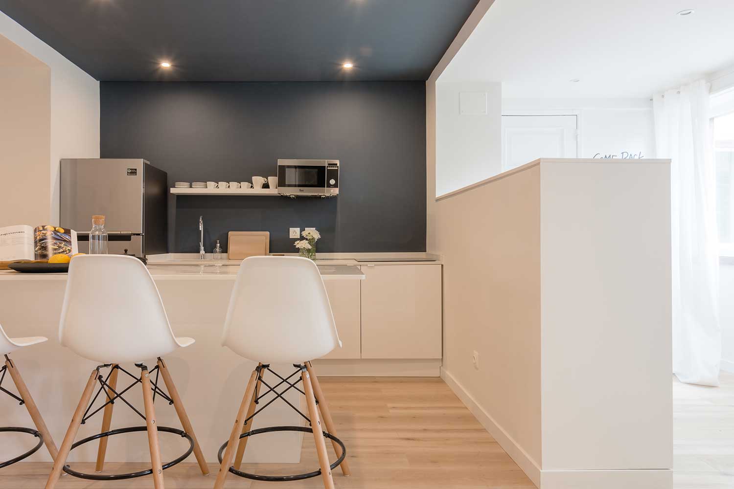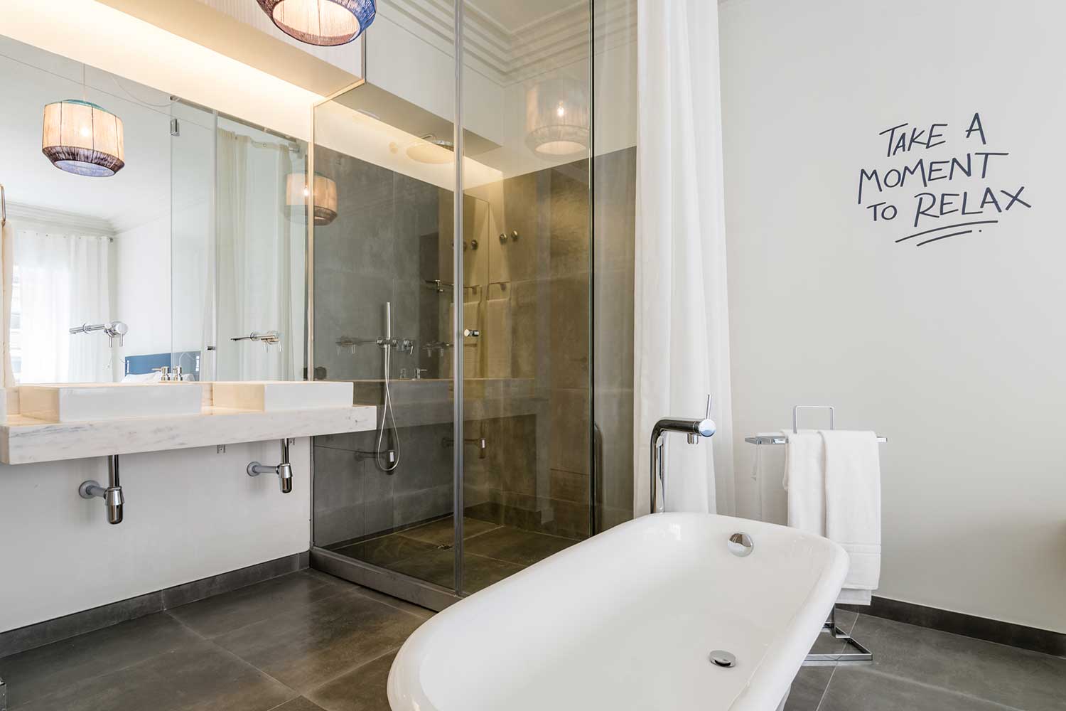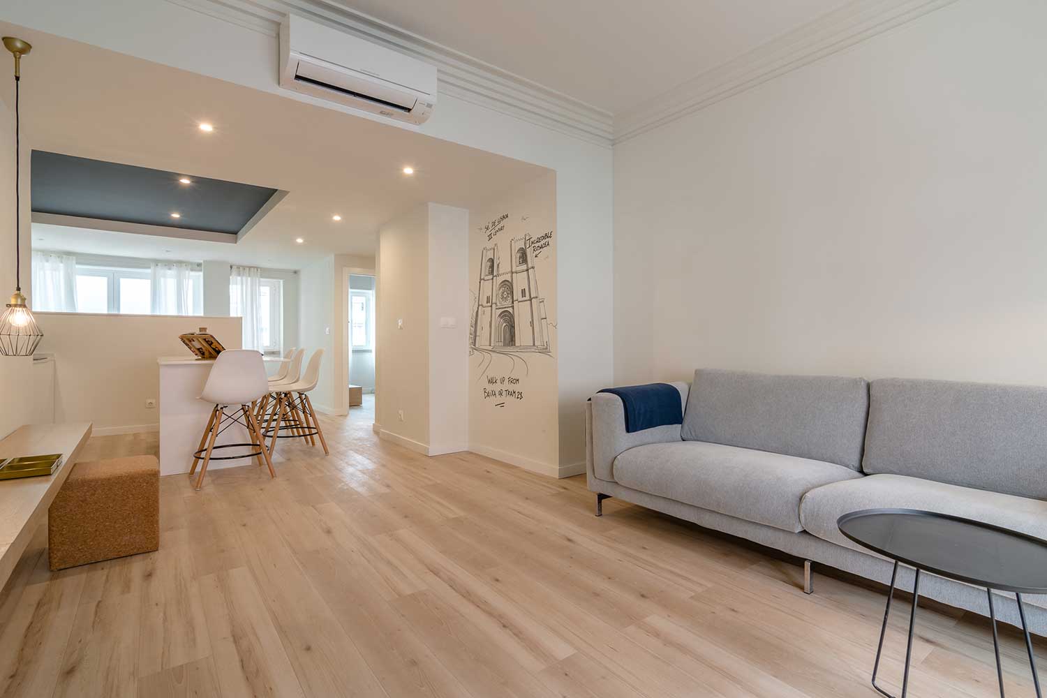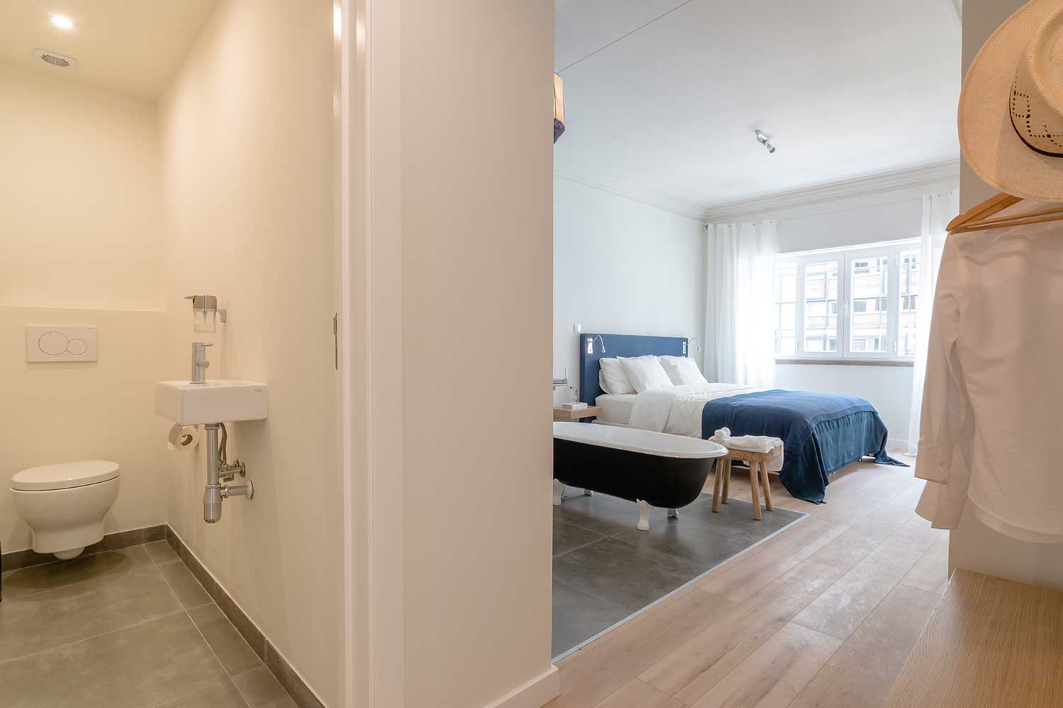 This apartment accomodates four people, has two bedrooms (one with two single beds and one master bedroom) and two bathrooms.